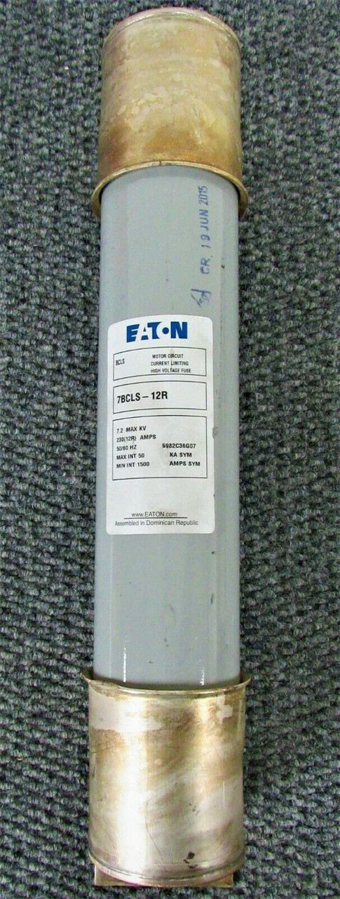 EATON FUSE. BCLS MOTOR CIRCUIT, CURRENT LIMITING, HIGH VOLTAGE FUSE. 7BCLS-12R. 230 (12R) AMPS. 50/60 HZ
