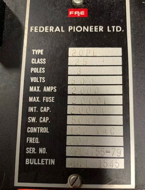 Interested in the Federal Pioneer 20PL 2000 Amp MO BOLT IN SWITCH 120 Volt Shunt 500 V? Contact Circuit Breaker Sales.