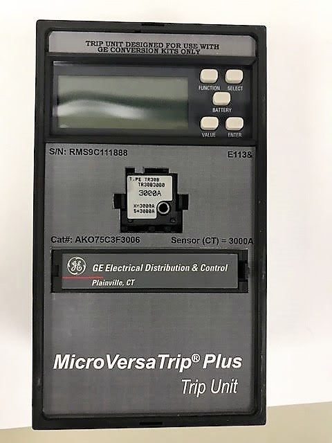 GE MicroVersa Trip Plus Trip Unit CAT No. AKO75CF3006 S/N RMS9C111888 3000amp