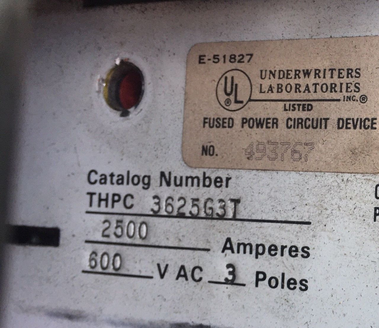 - GENERAL ELECTRIC THPC3625G3T 2500 Amp Switch W GFI
