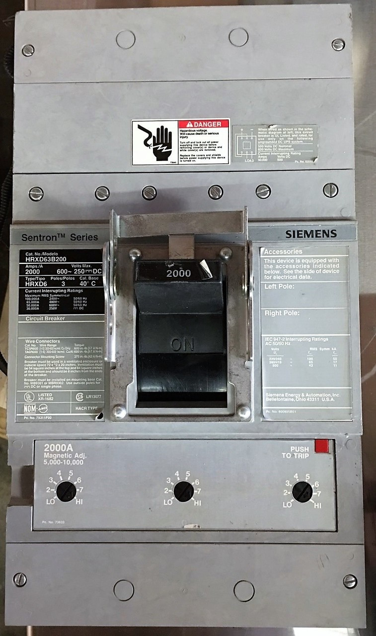 - HRXD63B200 Siemens Breaker, 2000 Amp With Shunt Trip, 120 Vac