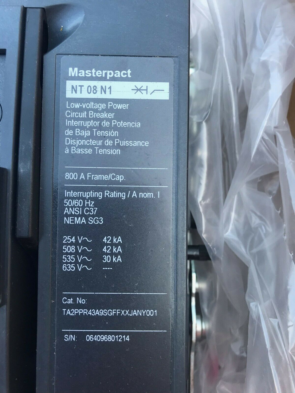 - SQUARE D MASTERPACT NT 08 N1 800 A FRAME/CAP CIRCUIT BREAKER