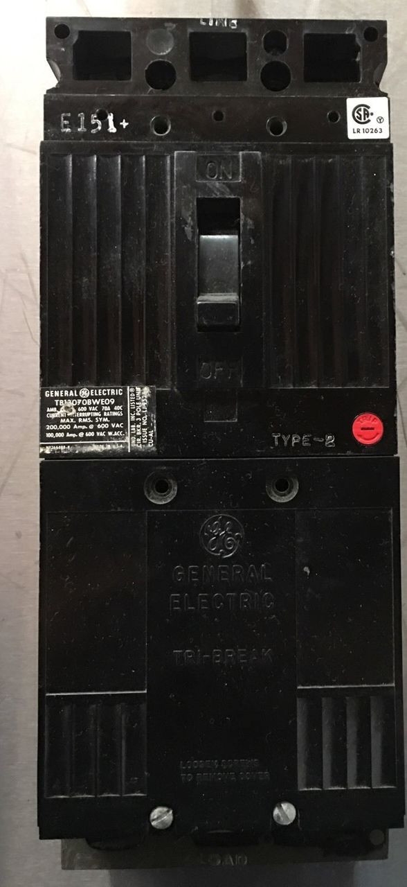 - TB13100BWE09 GE Breaker, 70 Amp, 600V, Reconditioned